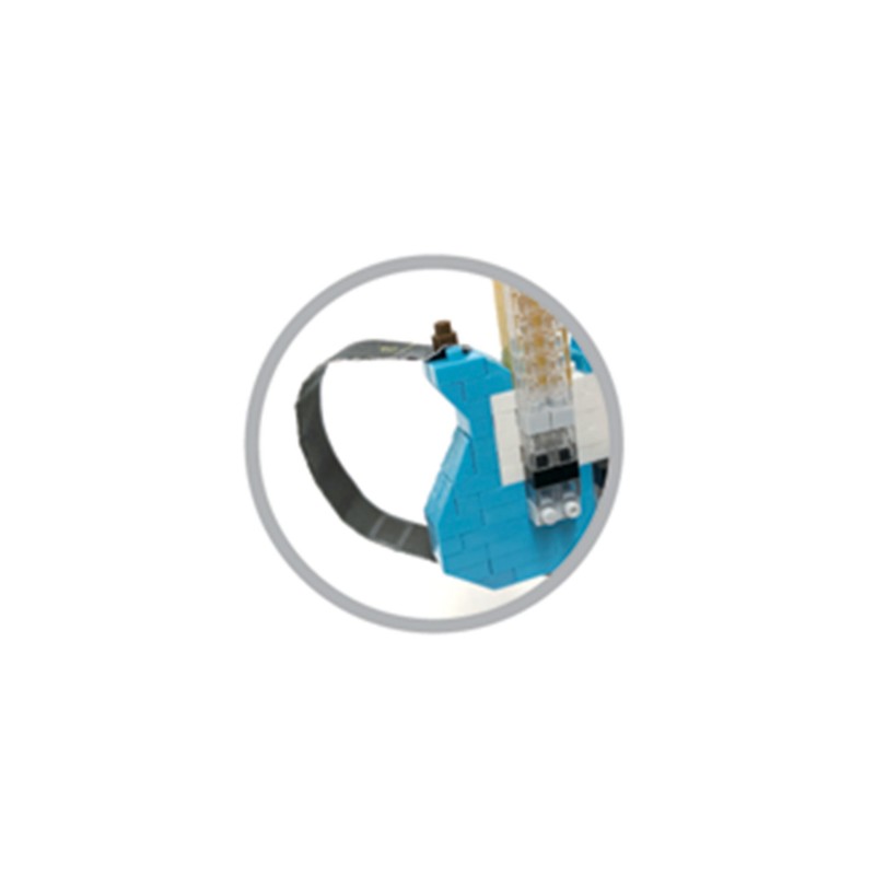 Tous les détails de la guitare électrique ont été reproduits, jusqu'à la sortie micro. Vous pouvez exposer votre nano-guitare sur son nano-socle. De plus, vous pouvez rajouter une sangle à votre nano-guitare en découpant une partie du notice de construction.